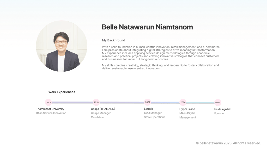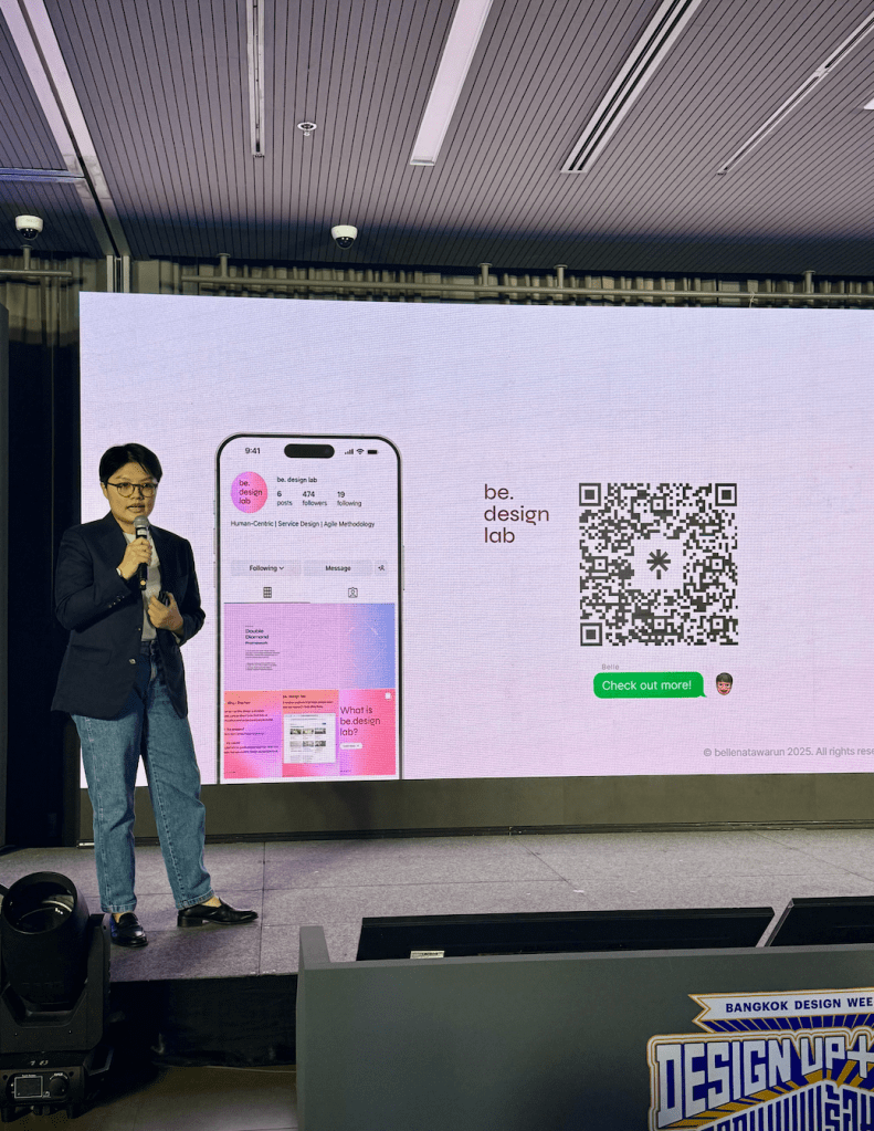 I had the opportunity to present my research on Service Design for Public Policy Platforms at Bangkok Design Week 2025, sharing the journey of be.design lab, a prototype born from my thesis. It was an exciting and rewarding experience that sparked valuable discussions on how service design can enhance policy development.